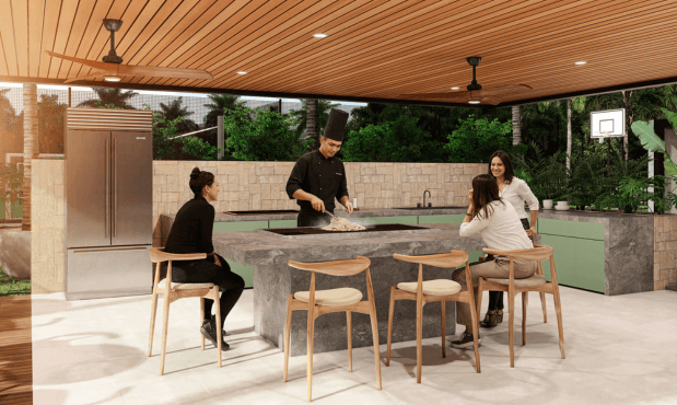Lobby o recibidor doble altura, sala de servicio, salón social multifuncional o sport bar, sky bar, pet shower, plazoleta de juegos y cargadores para carro eléctrico.